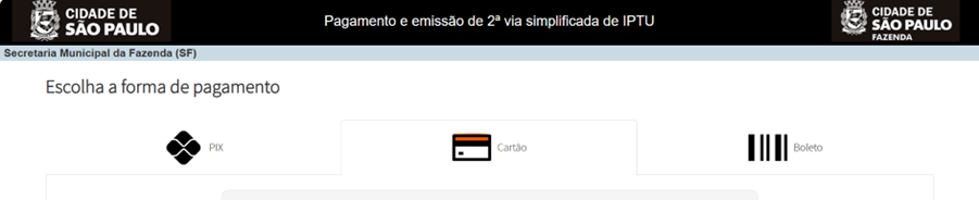 O pagamento do IPTU com cartão de crédito deve ser feito somente a partir do portal oficial (iptu.prefeitura.sp.gov.br). Lembre-se, a Prefeitura não envia links de pagamento por WhatsApp, SMS ou e-mail.