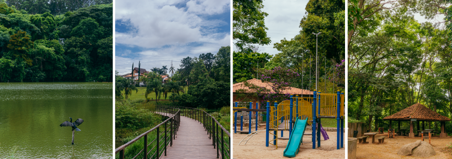 Churrasqueiras, quiosque, aparelhos de ginástica, pista de Cooper, paraciclo, sanitários, playground com brinquedos típicos canadenses, quadras poliesportivas, lago com ponte de madeira para contemplação; acessibilidade para pessoas com deficiência nos banheiros e equipamentos de ginástica. Mantém atividade de Bosque da Leitura, sob a responsabilidade da Secretaria Municipal de Cultura.