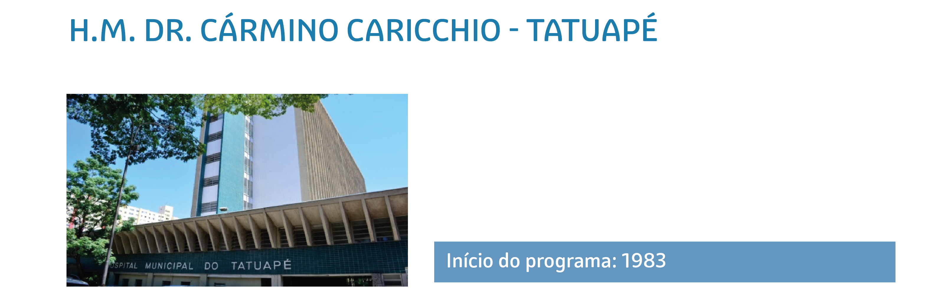 O Programa é ofertado em quatro Hospitais Municipais: Dr. Fernando Mauro Pires da Rocha, Dr. Carmino Caricchio, Dr. Alípio Correa Neto e Dr. Arthur Ribeiro de Saboya.