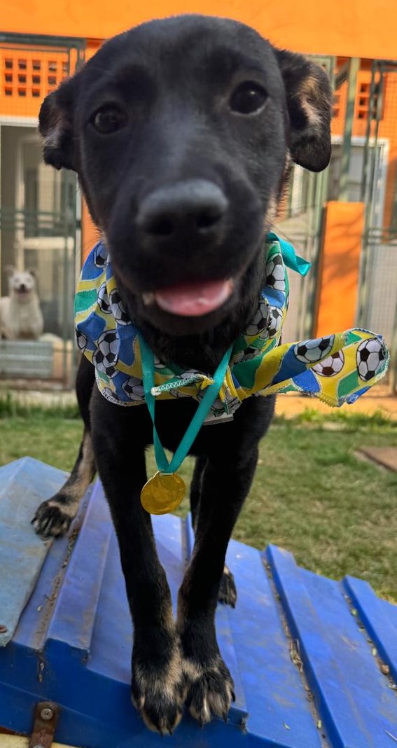 Olá! Sou um cãozinho tranquilo, muito esperto, que adora brincar. Vem me conhecer! Deixa eu fazer parte da sua família?